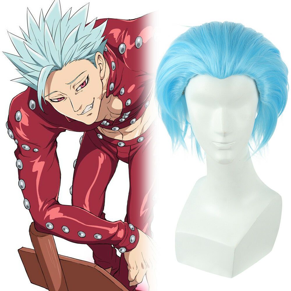 The Seven Deadly Sins Greed Fox Ban Cosplay Wigs Short Straight Blue Hair Wigs