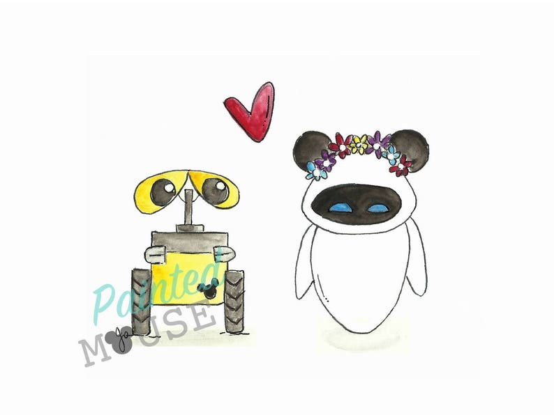 5x7 Walle And Eve Disney Art Disney Princesses Disney Print The Painted Mouse Cupcake Art Walle Eve Walle Gift