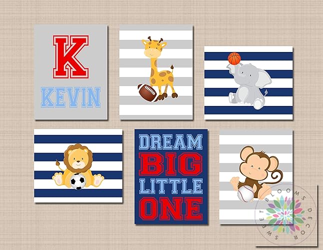 Animals Sports Nursery Wall Art Future All Star Blue Gray Red Safari Sports Decor Monogram Football Soccer Unframed 6 Not Canvas C663